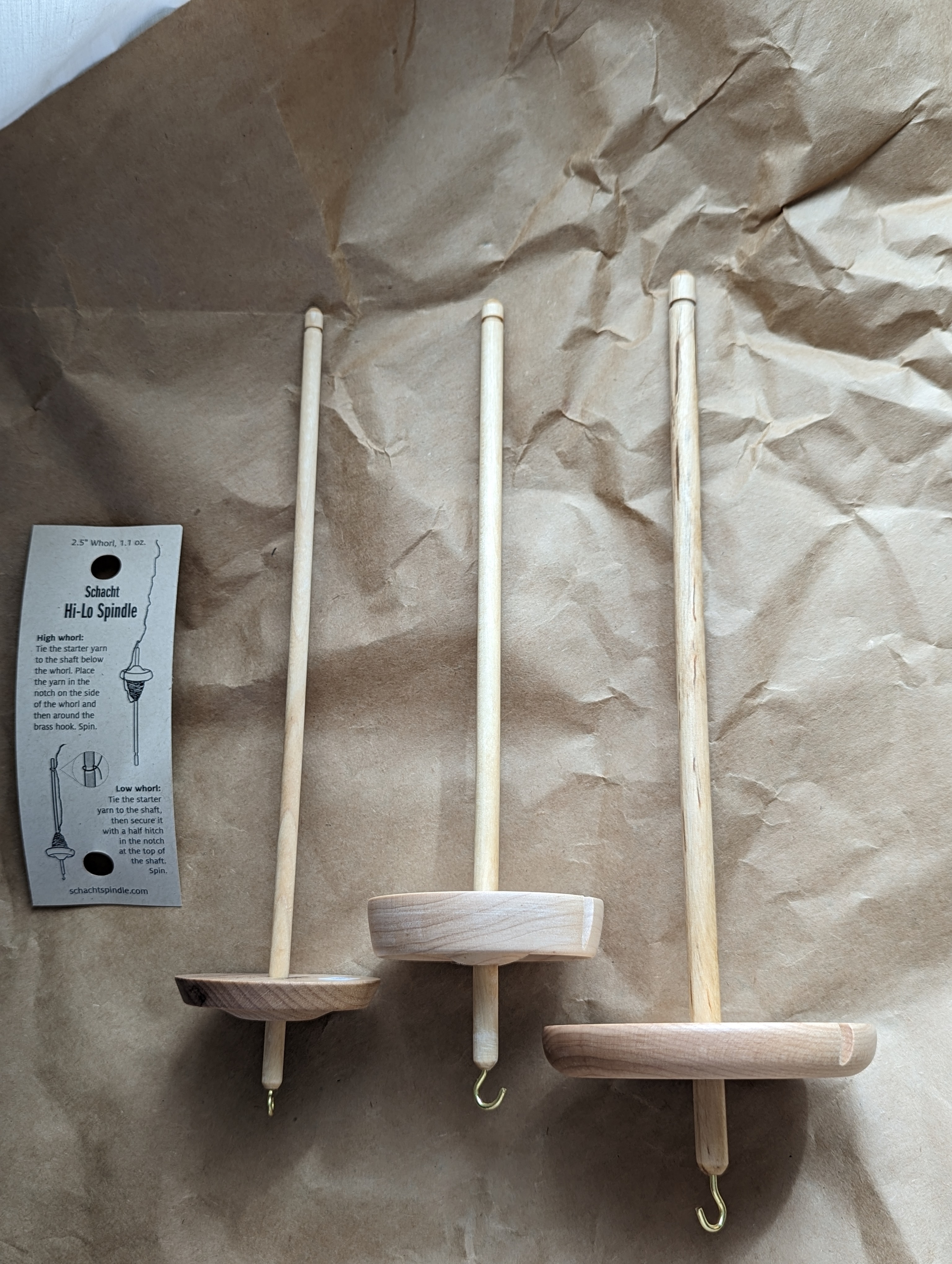 The Schacht handspindles, your choice of three sizes (all priced at $33) are available over at my Etsy shop here