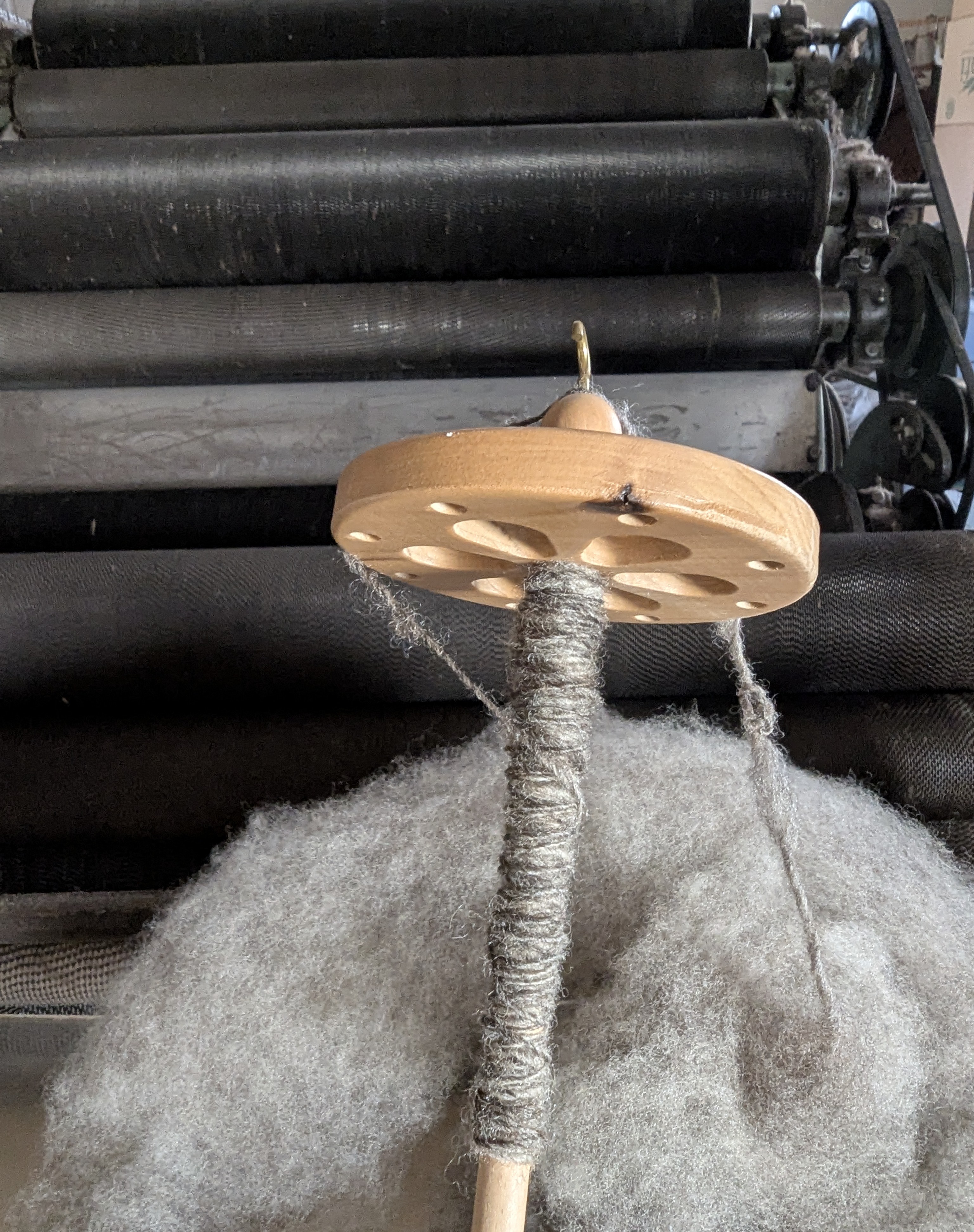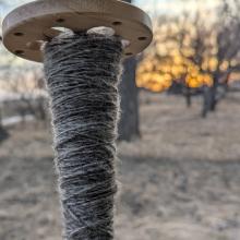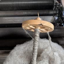 Spinners accustomed to commercial combed top, which can be dense and require significant predrafting, will likely find this carded preparation easy to spin. Biotayarns' carded wool blends are made by feeding washed wool (and other fibers) into a carding mill that opens up the locks, removes vegetable matter and passes it through several carding rollers that card the fibers but do not align the fibers parallel as in combed top. The wool you spin directly from this cloud will make a beautiful woolen yarn, the same as is spun from wool roving. Beautiful long draw spinning with this fleece!