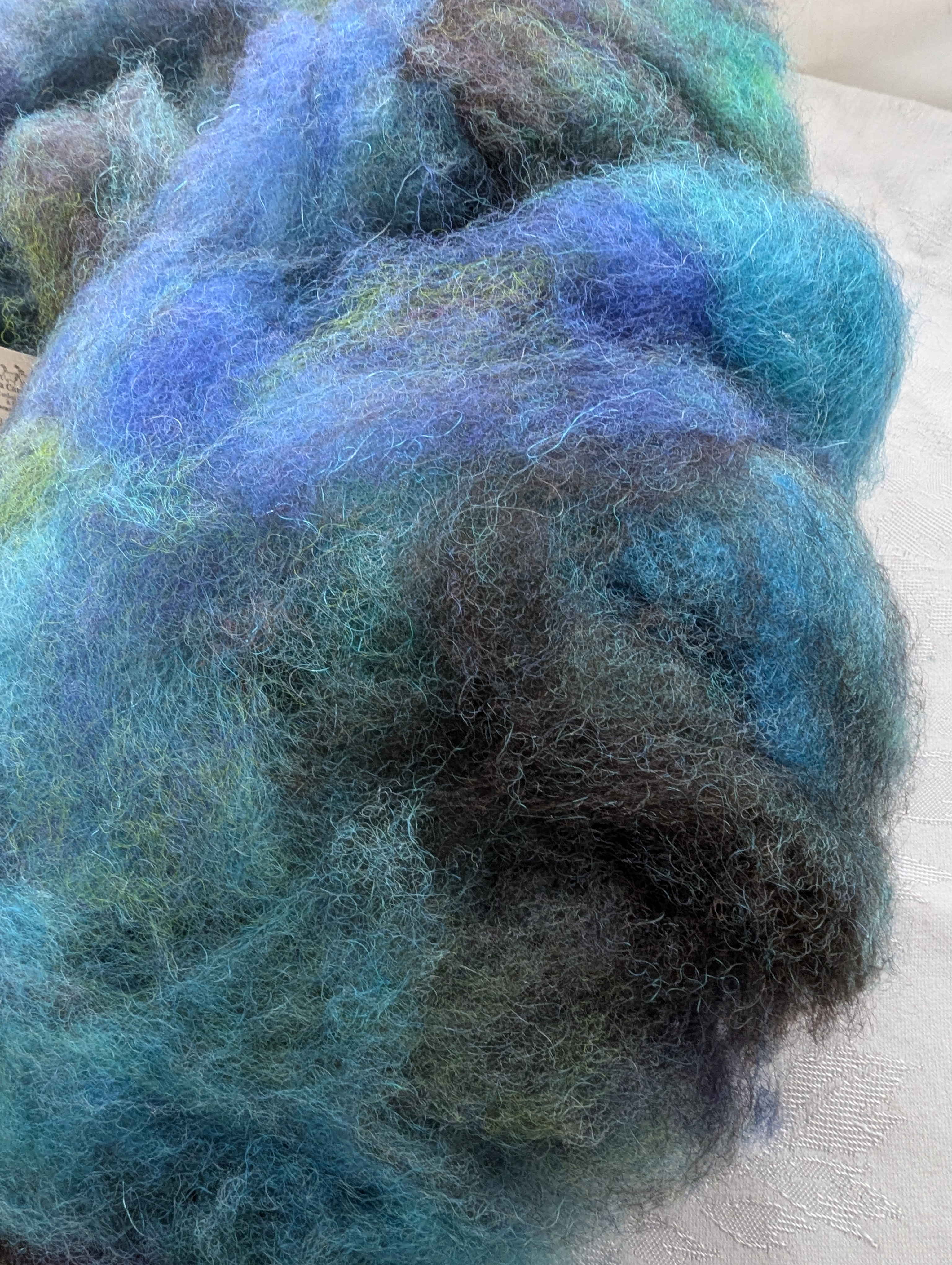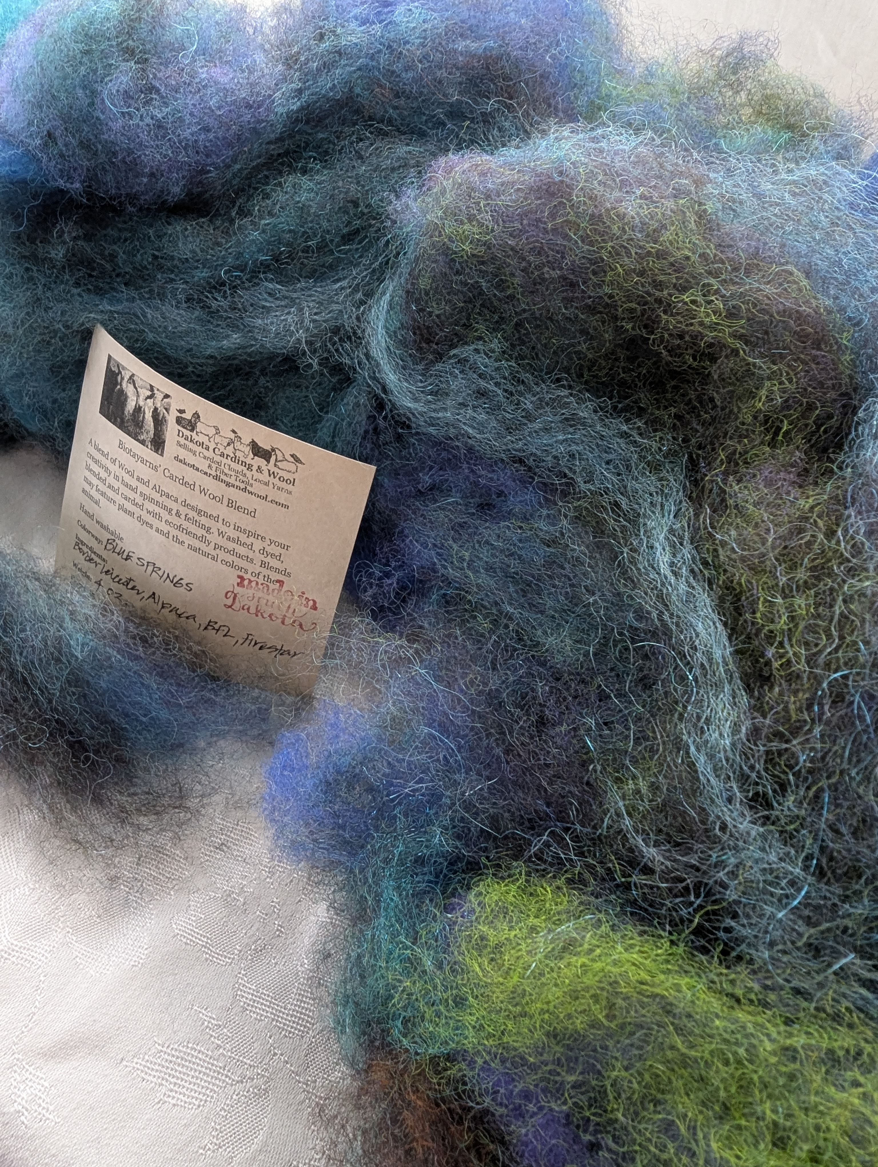 Blue Springs - carded wool hand spinning blend, wool to spin, felting wool, carded cloud