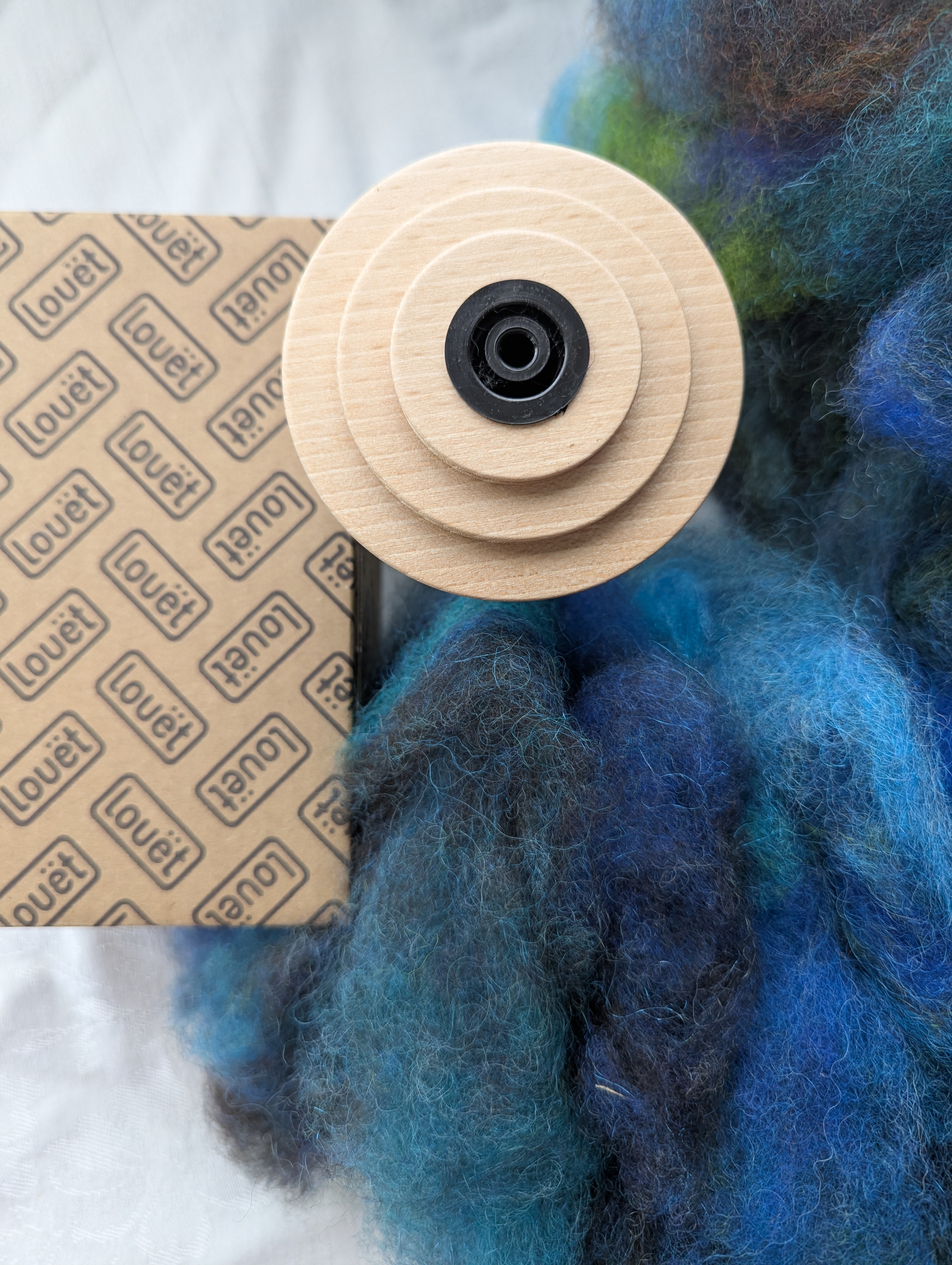 Spinners accustomed to commercial combed top, which can be dense and require significant predrafting, will likely find this carded preparation easy to spin. Opalescence carded wool blends are made by feeding washed wool (and other fibers) into a carding mill that opens up the locks, removes vegetable matter and passes it through several carding rollers that card the fibers but do not align the fibers parallel as in combed top. The wool you spin directly from this cloud will make a beautiful woolen yarn, the same as is spun from wool roving.