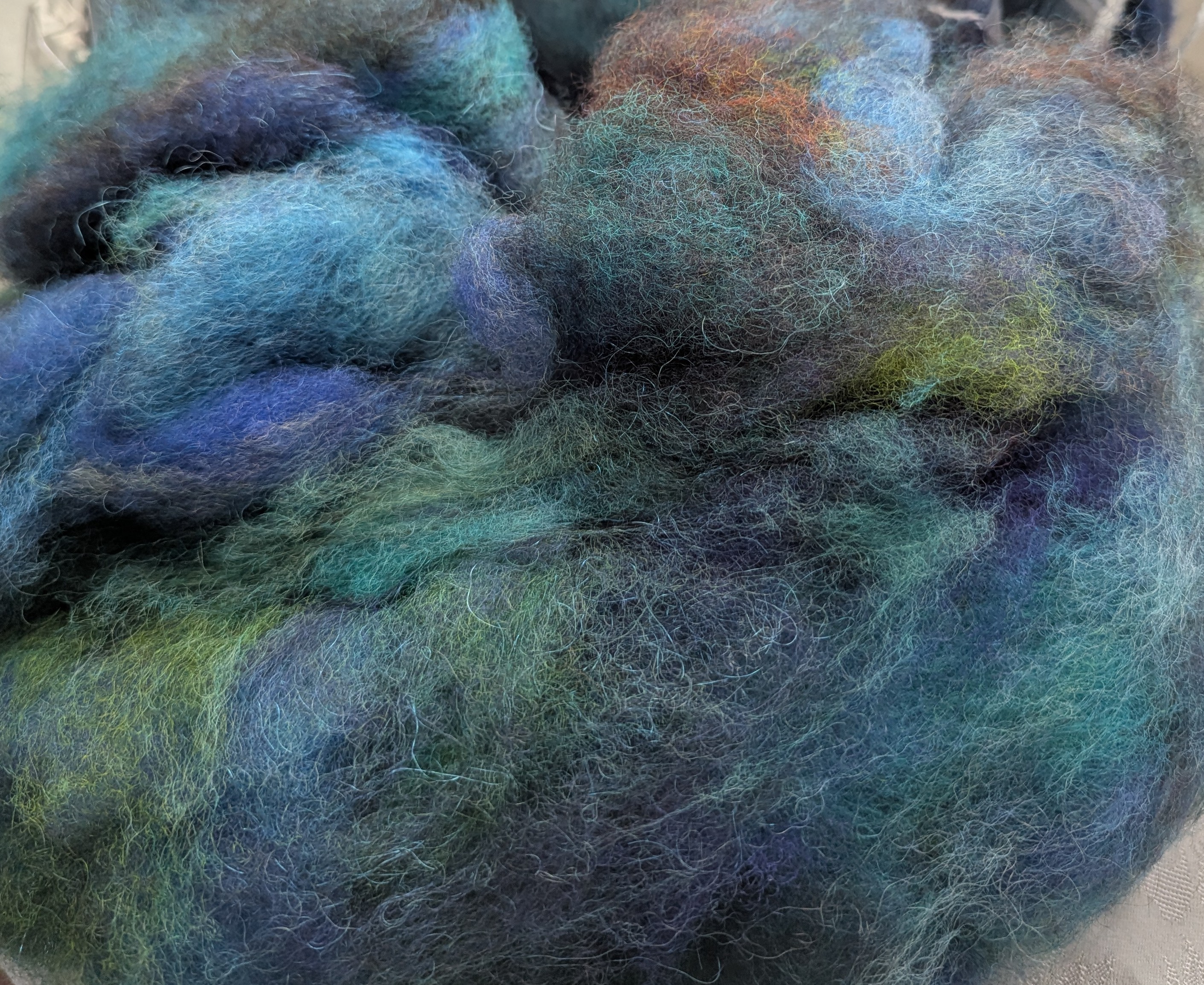 4 ounces of carded wool blend for hand spinning or felting.