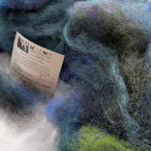This long wool blend will spin together easily and the yarn or felt, will be durable with loft and sheen. This is a fiber blend of long wools: Border Leicester wool, CVM x Wensleydale wool combined with Alpaca (no mohair) plus a touch of firestar added for sparkle and silk noil for texture.