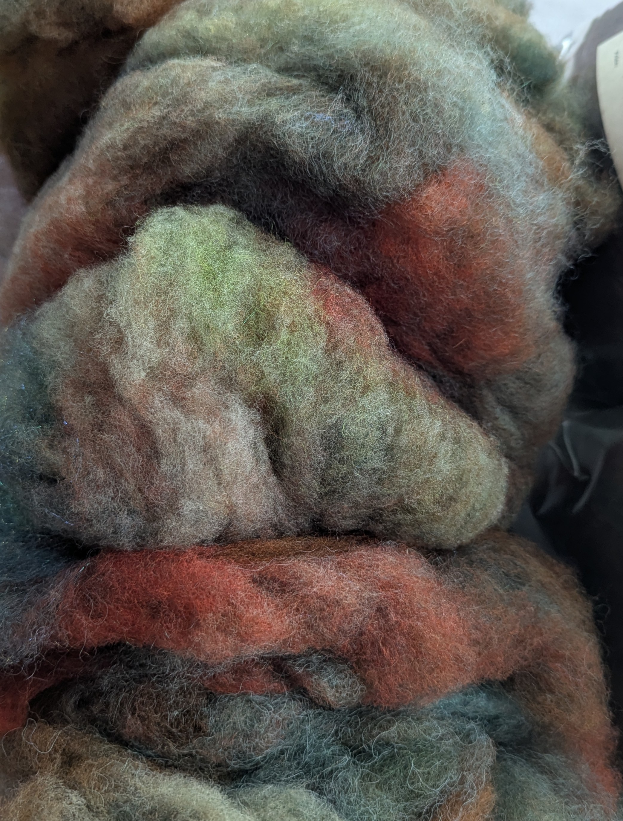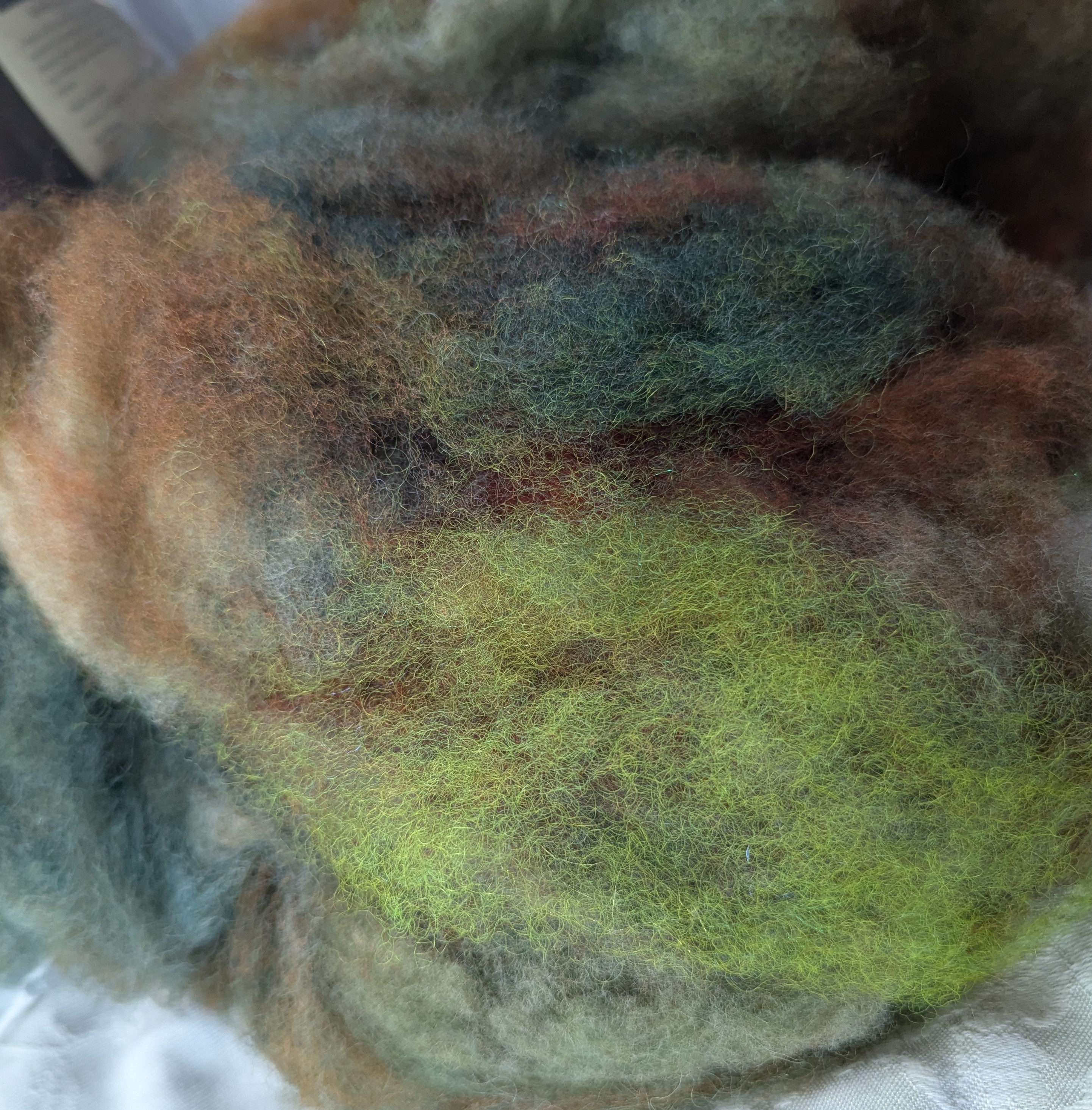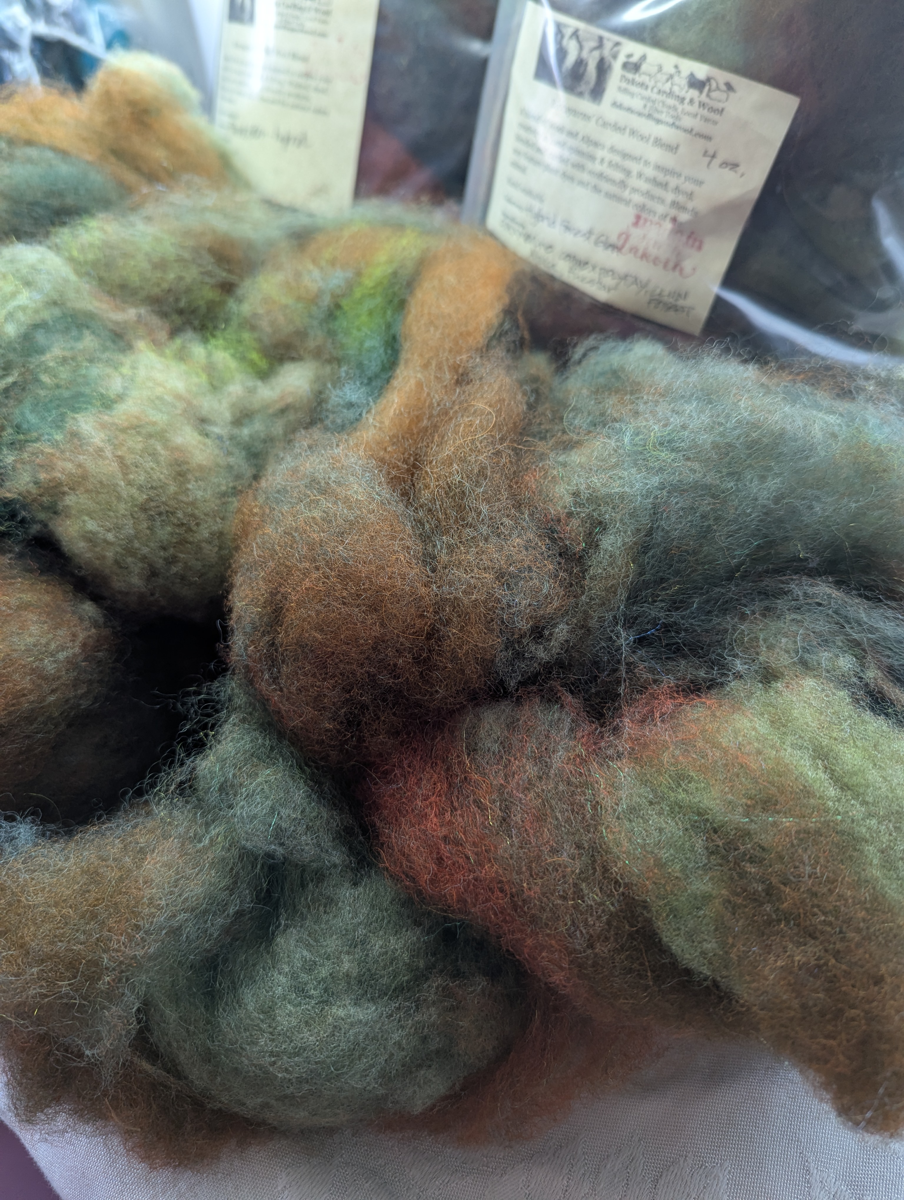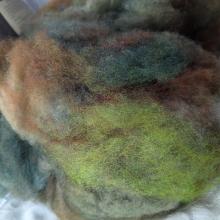 Amazing, soft, long wool blend that will hand spin and felt. This cloud of fiber is easy to spin and the colors are engaging.